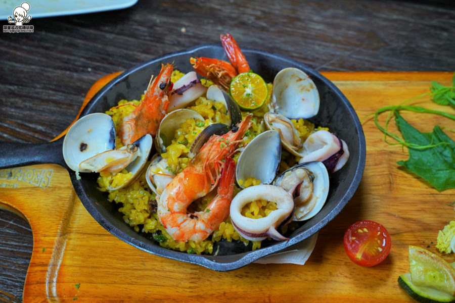 搭配季節現撈海鮮,帶有辣度的西班牙番紅花海鮮飯