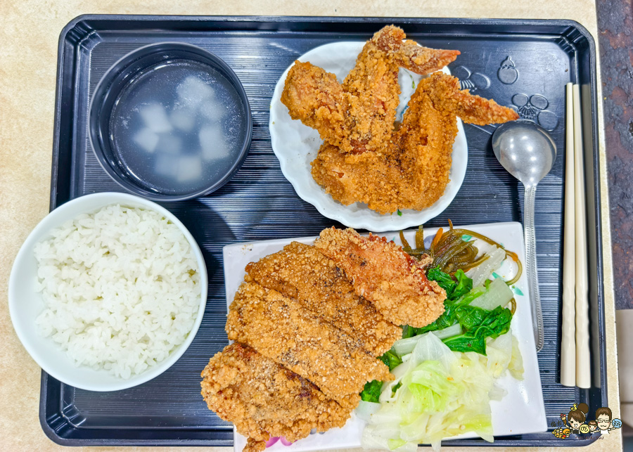 第一次來不知道要吃什麼,推薦直接點綜合特餐(雞腿、𩵚魠魚、爌肉)、招牌雞翅飯