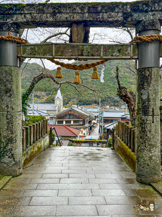 可以從崎津諏訪神社的鳥居,遙望到崎津教會