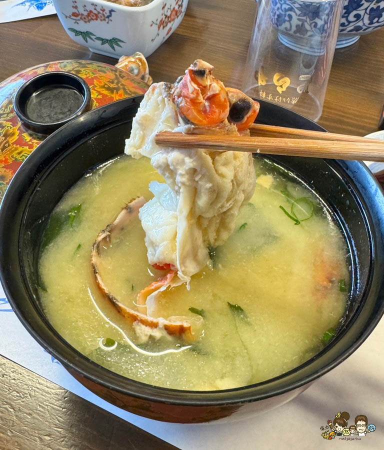 龍蝦熬煮的味噌湯,會幫忙分裝