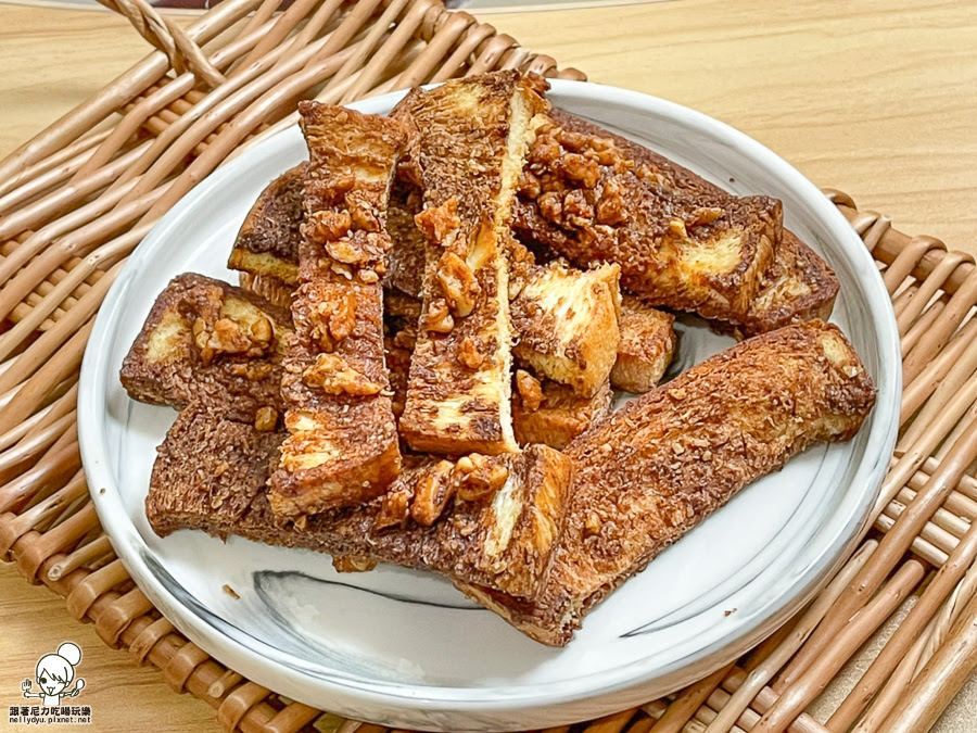 吐司卡滋、肉桂飄香,核桃顆粒層次還帶有肉桂糖霜風味