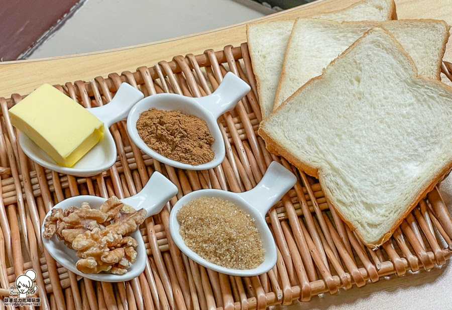 材料:奶油、砂糖、核桃、肉桂粉、吐司