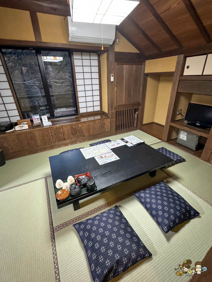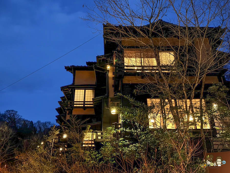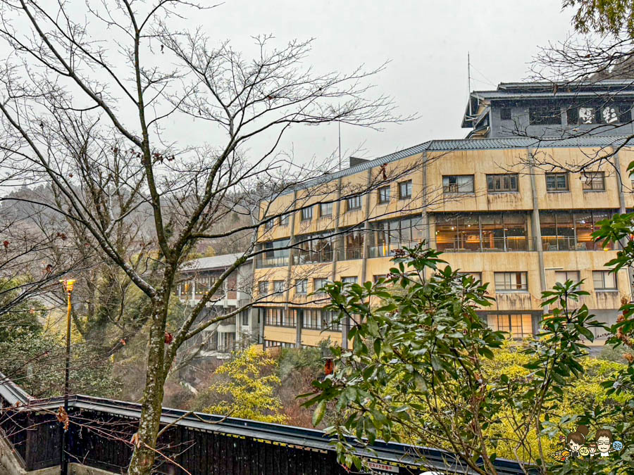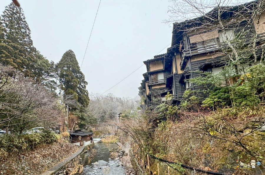 溪水邊也有很多溫泉會館,打開窗戶就可以欣賞到美景