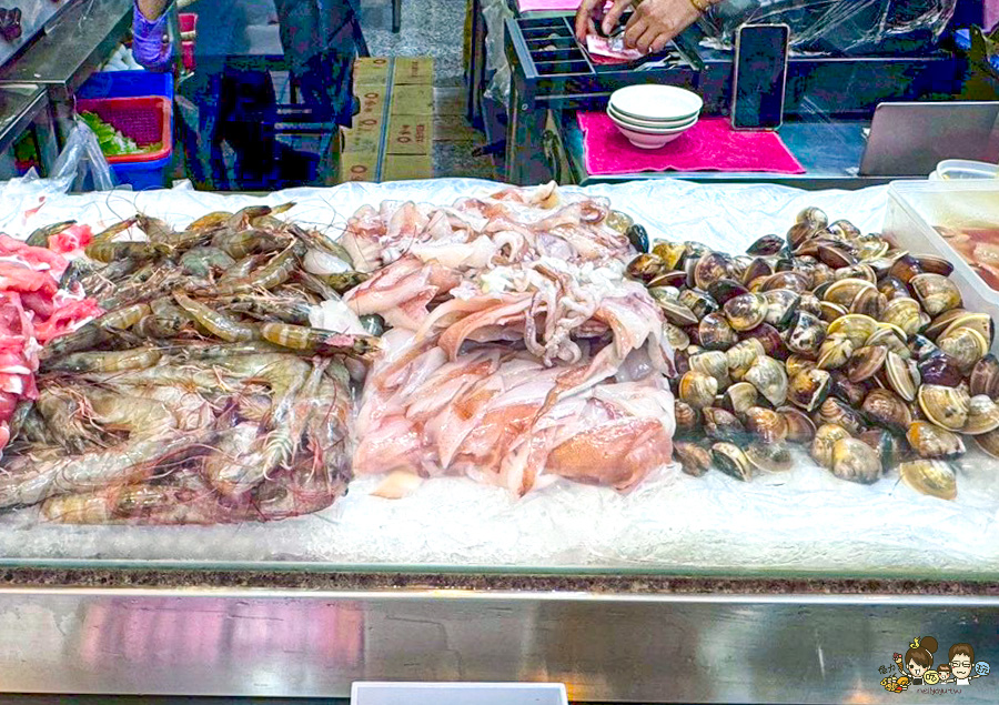 檯面上滿滿的新鮮海鮮,都是鍋燒麵內的鮮味,使用的高湯也是自家熬煮,很濃郁帶有海洋甜味