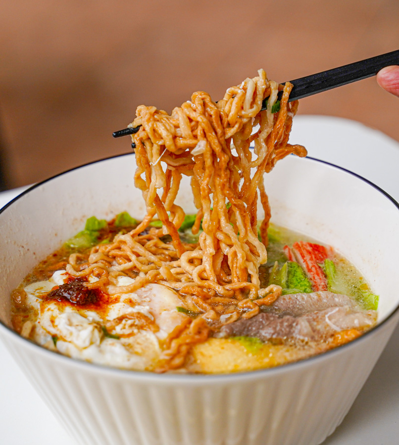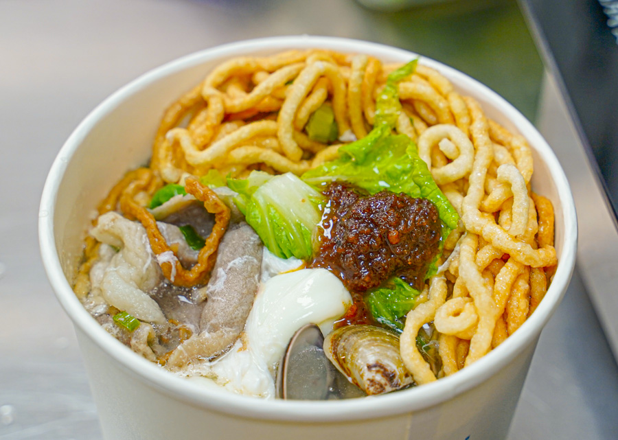 現在很多人都愛吃混搭,可以升級加15元加泡麵、或者雞絲麵於意麵內