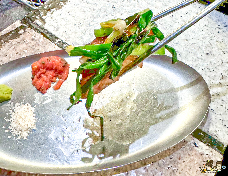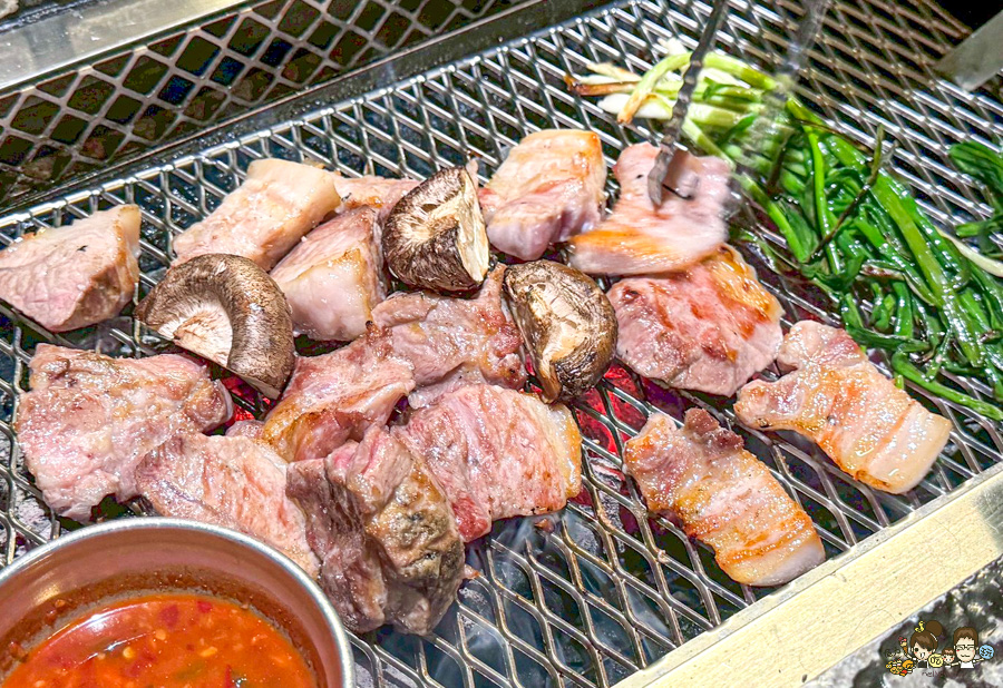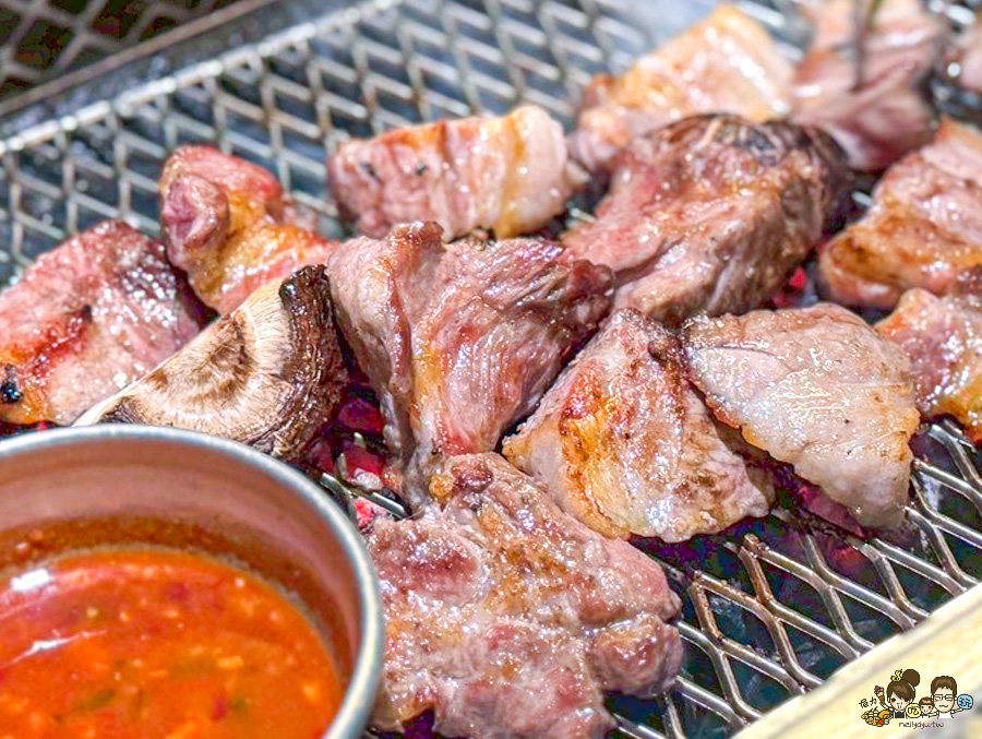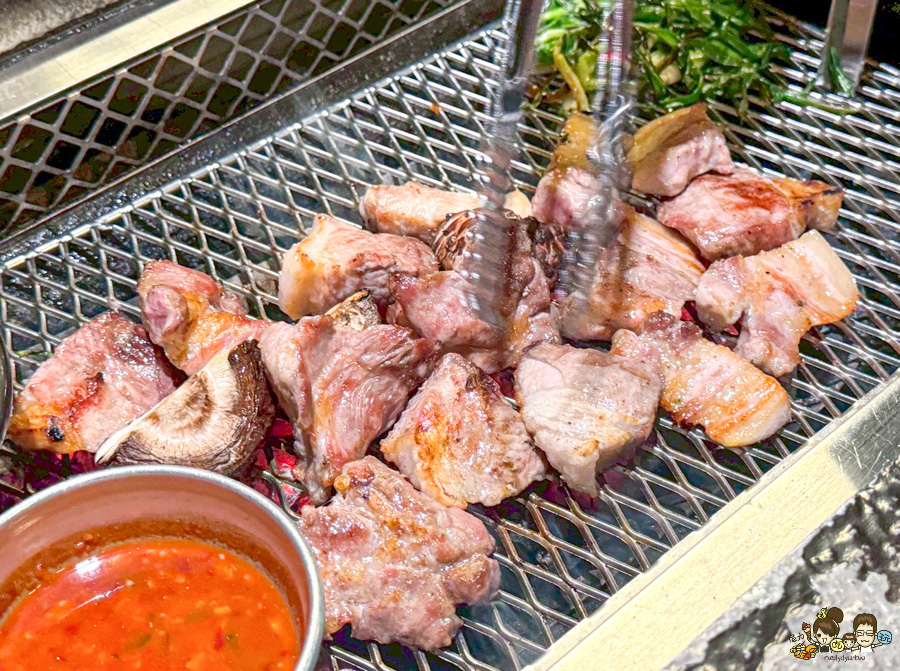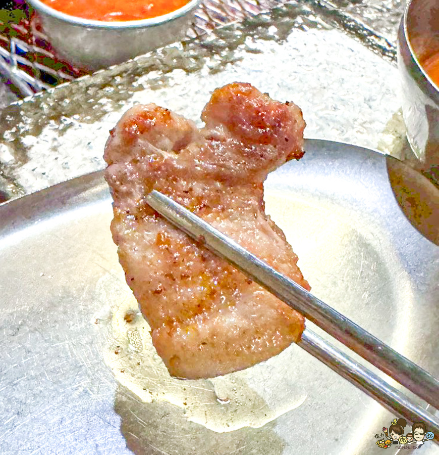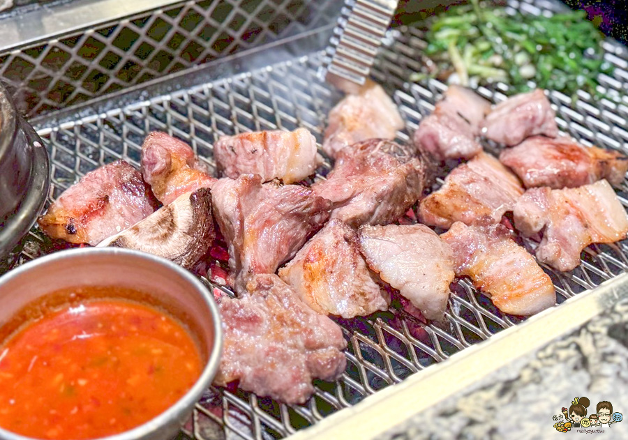 燒肉可以先吃原味,搭配烤盤上的烤肉沾醬提味
