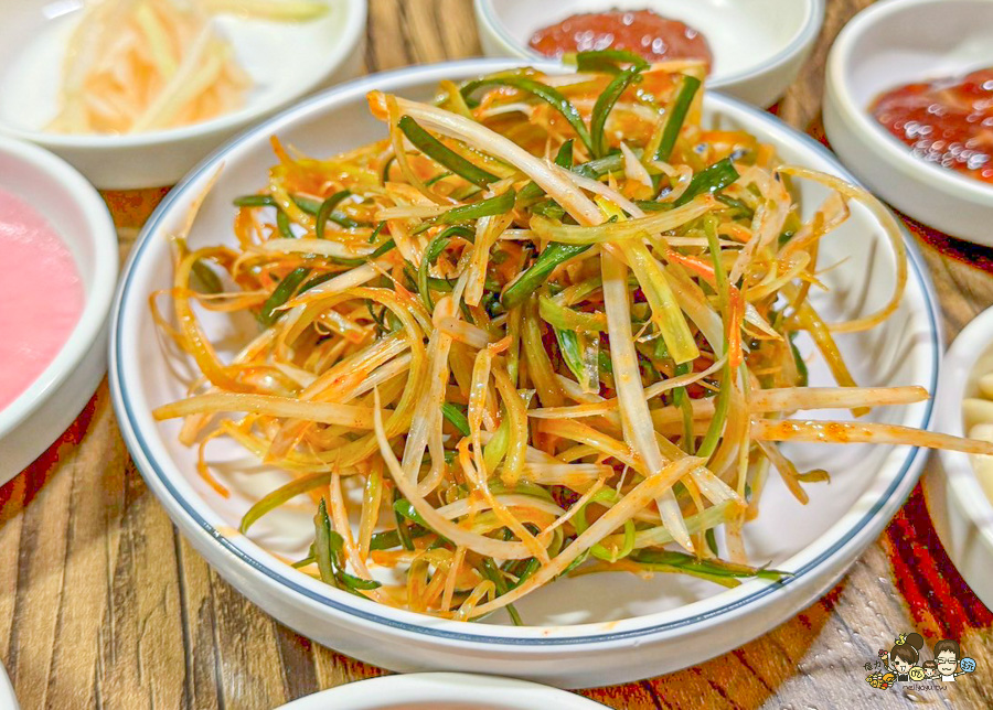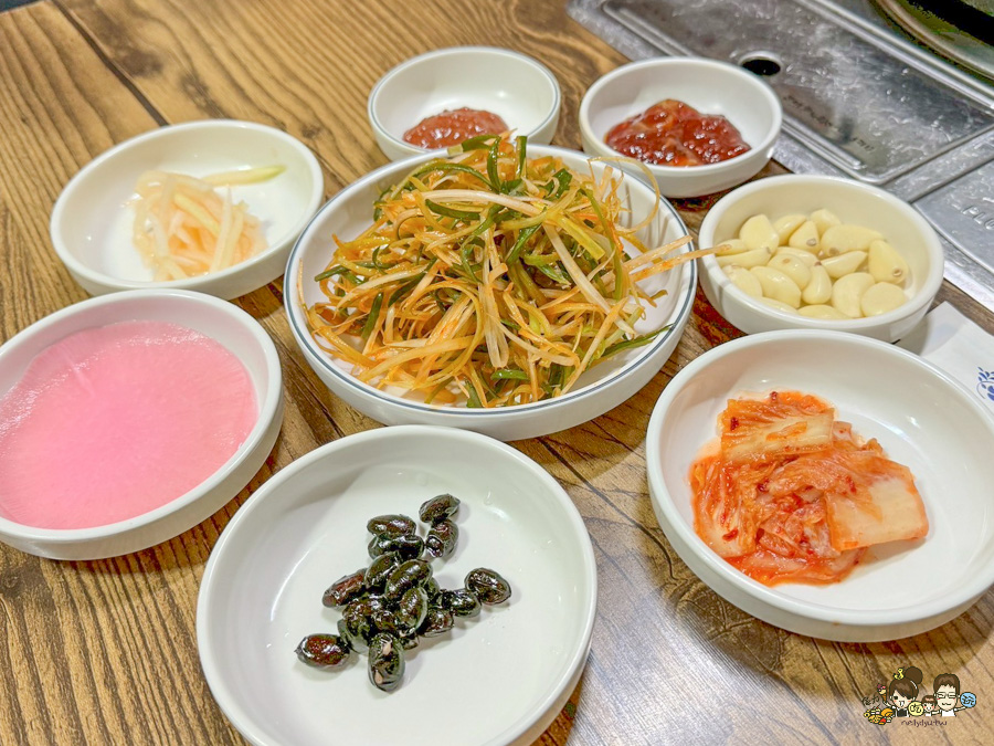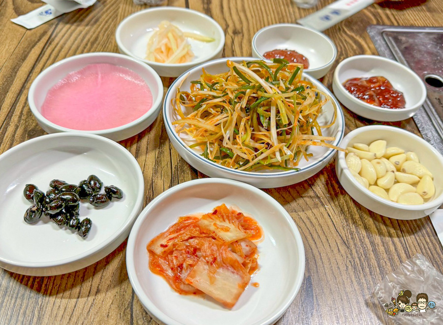 各式各樣的沾醬、泡菜、小菜