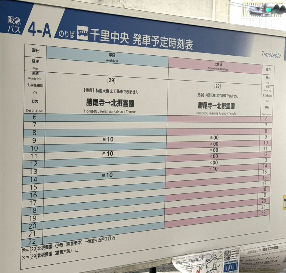 平常日一天只有三班,假日比較多班次可搭公車抵達 勝尾寺