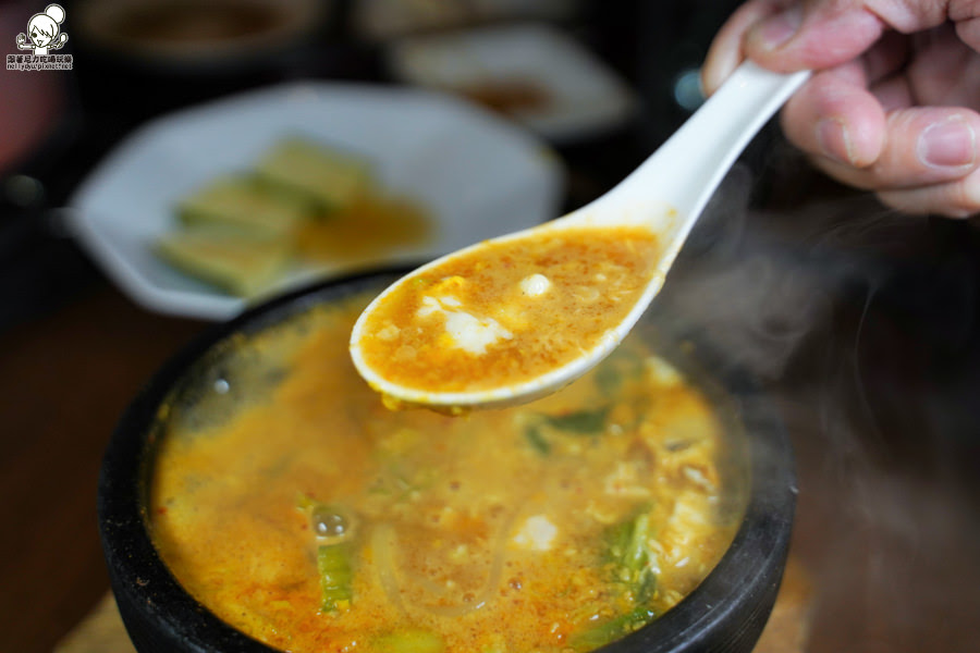 使用韓國拉麵帶有滑口Q彈度,湯頭帶有微微開胃辣度