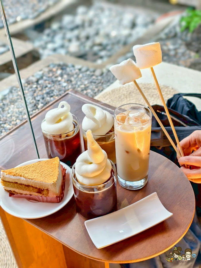 還有特色的藥果棉花糖蛋糕、還可以點棉花糖自己烤