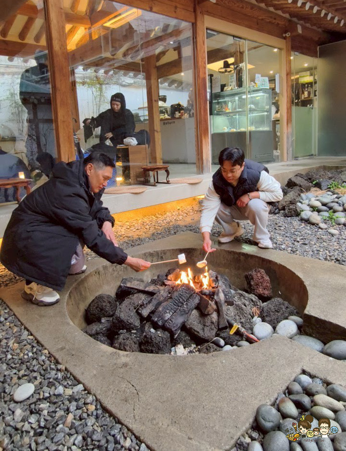 所以一靠上去烤,室內喝咖啡的人都圍在玻璃旁邊看他們烤棉花糖XD