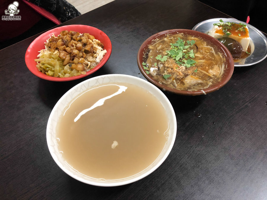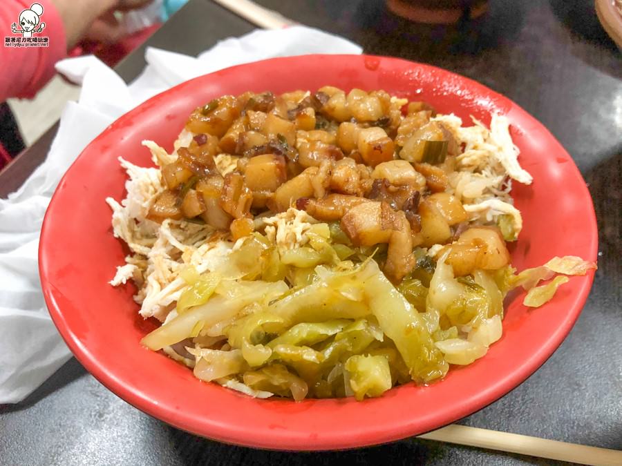 老公點的肉燥飯+雞肉飯,還添加了酸菜,整體的滋味很獨特,也蠻好吃的ㄟ