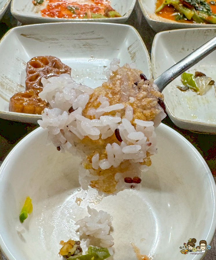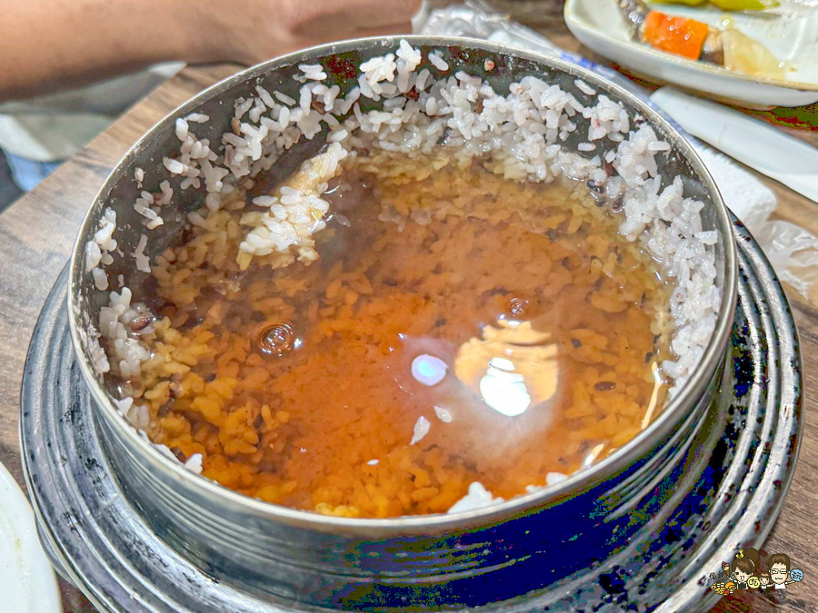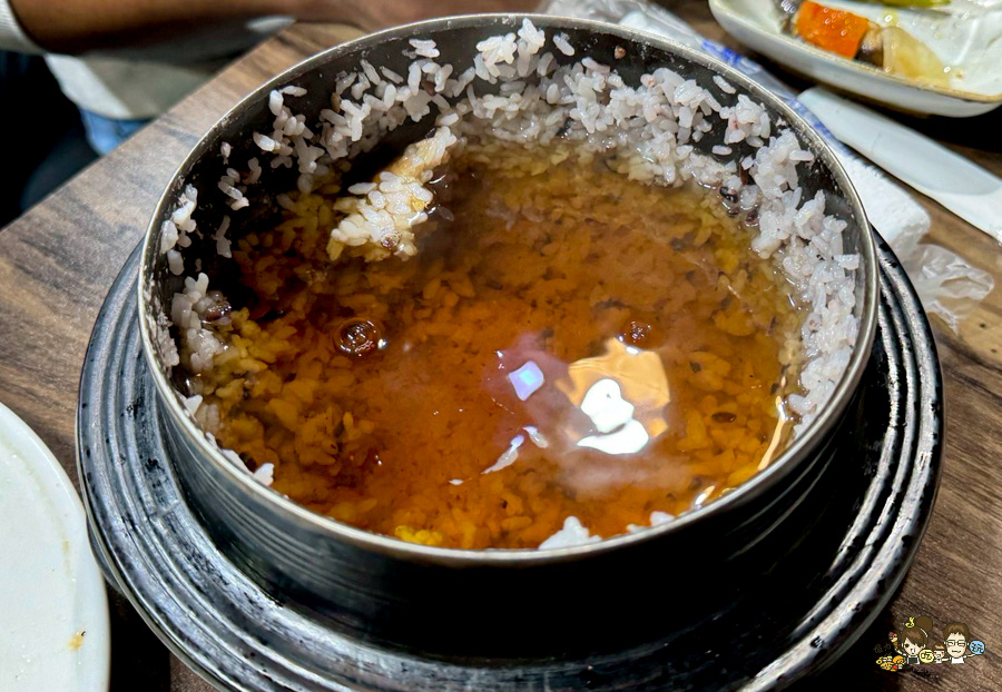 老闆叫我們把飯撈起來,再倒入水就會變成石鍋湯飯