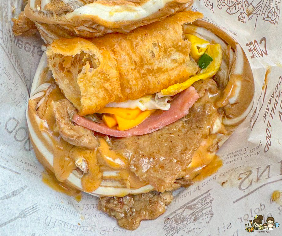 有燒肉、起司、培根、蔥蛋,每一口都好豐富
