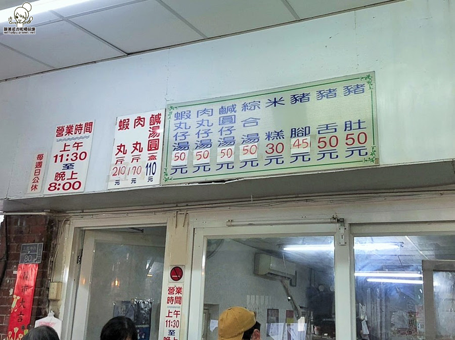 蝦丸湯、肉丸湯、鹹湯圓湯、綜合湯、米糕、黑白切