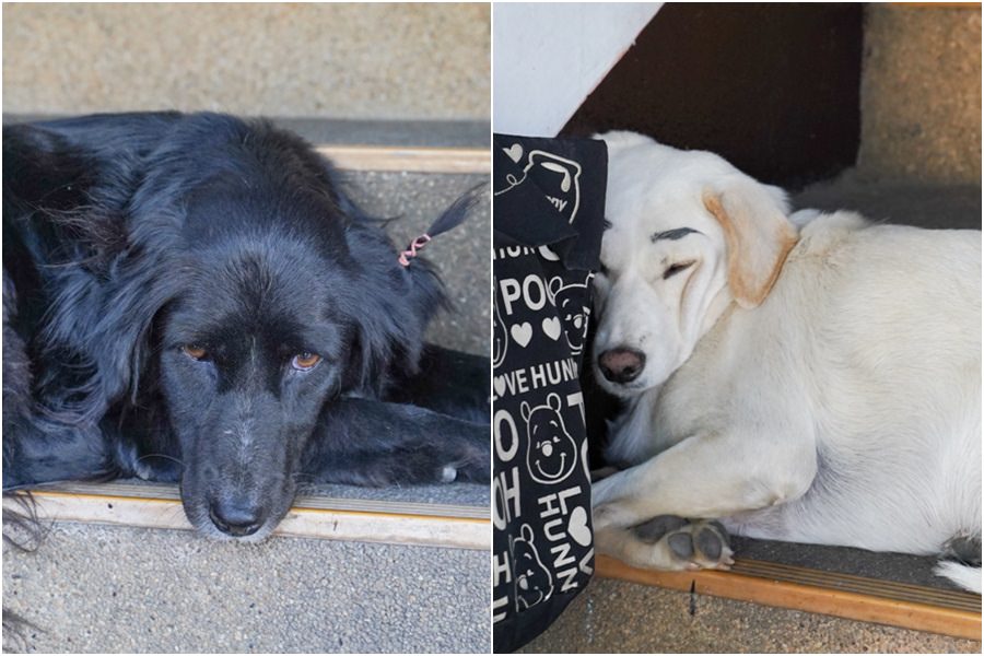膜拜的神像都佈滿的金箔,庭院也非常多雞隻、狗狗和平相處