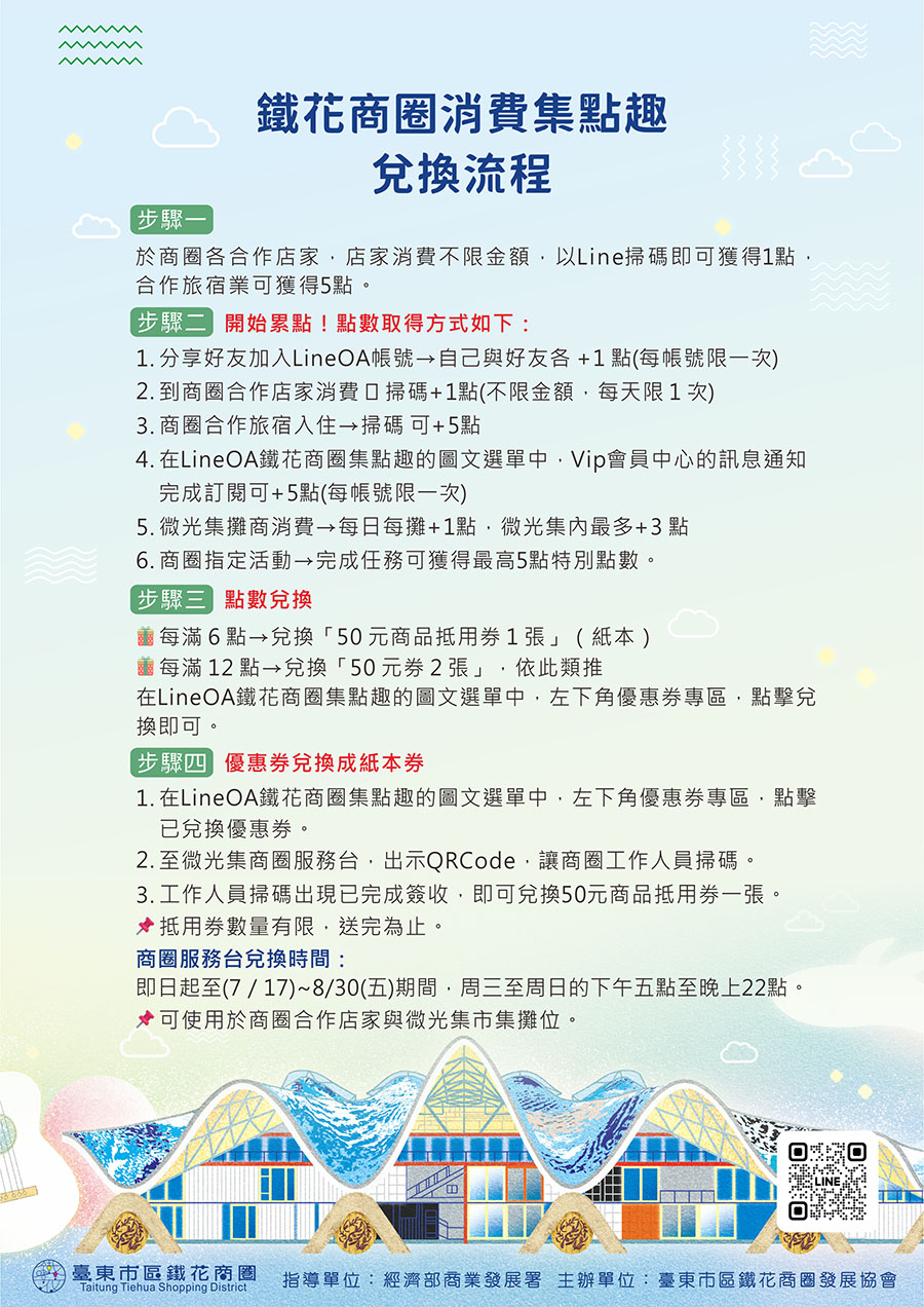 鐵花商圈從7/17日起至8/30日止,推出消費集點活動