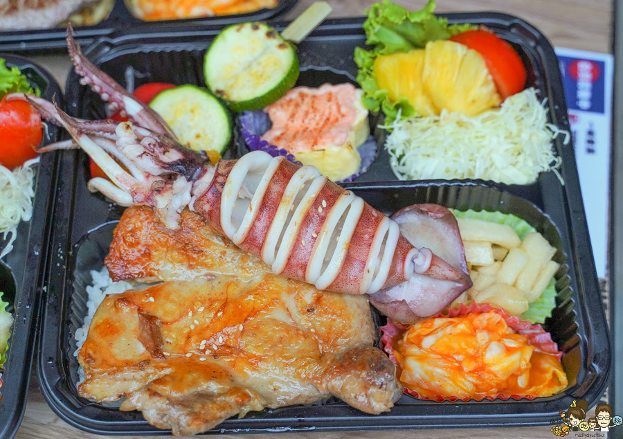 最便宜的外帶餐盒,明太子玉子燒、椒鹽烤櫛瓜、和風沙拉、手工黃金泡菜、柚子蘿蔔、古早味鐵板麵(黑胡椒)