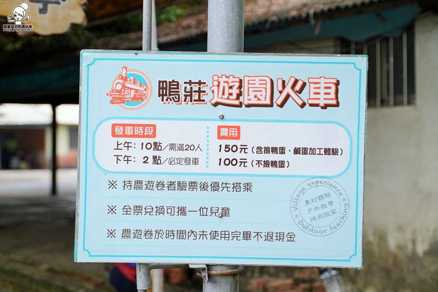 搭乘遊園的嘟嘟小火車,專人帶領講解、到鴨舍撿鴨蛋,體驗鹹蛋製作