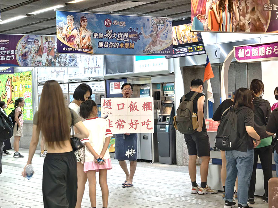 都會看到老闆高舉牌子,非常好吃樋口飯糰