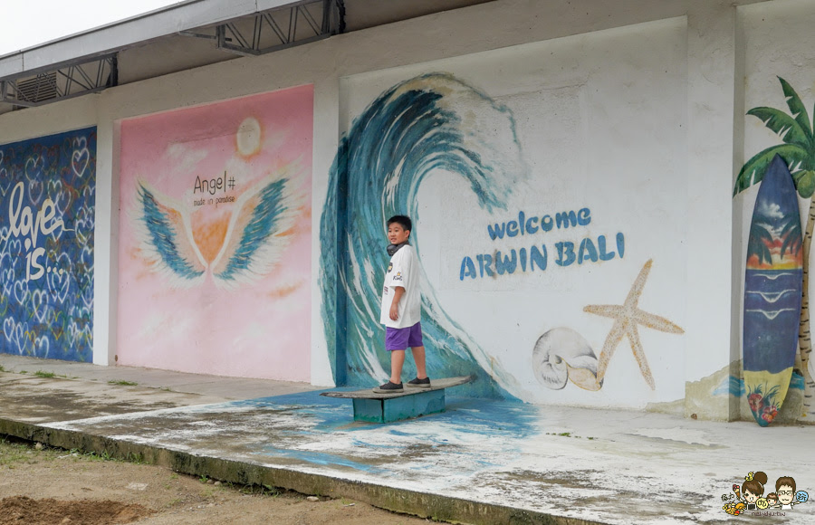 還有網美彩繪打卡牆,假裝自己是很強的衝浪勇者