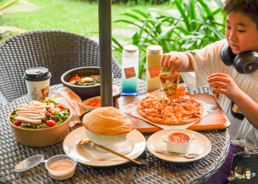 園區內還有提供餐點,輕食餐點、手工義式美食、沙拉、披薩、甜點等美食都有