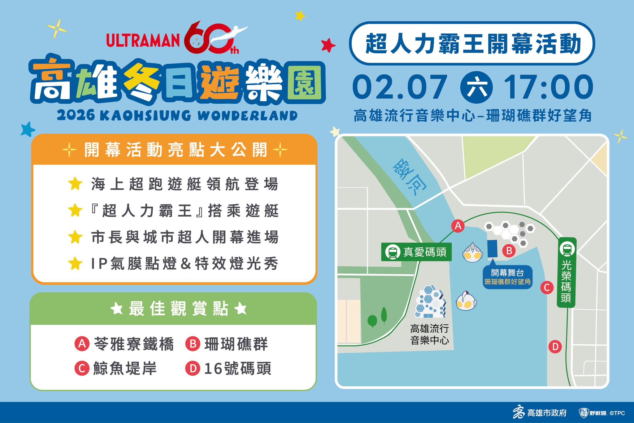 𝟮𝟬𝟮𝟲高雄冬日遊樂園,以「超人力霸王」為主題,結合港灣景觀、光影展演