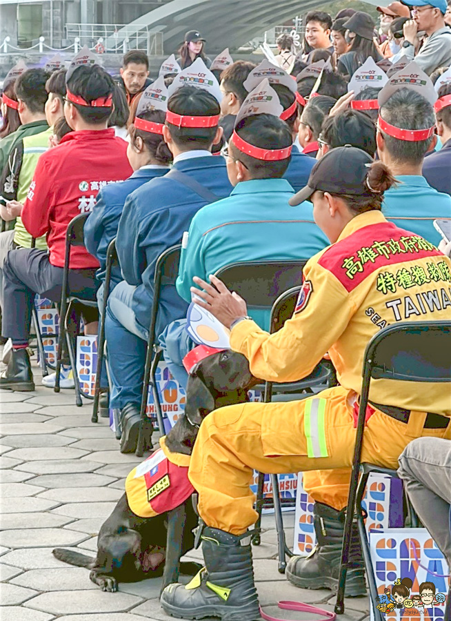 陸上: 陳其邁市長帶領消防、警察等60位**「城市英雄」**走紅毯,象徵守護高雄的無名英雄。
