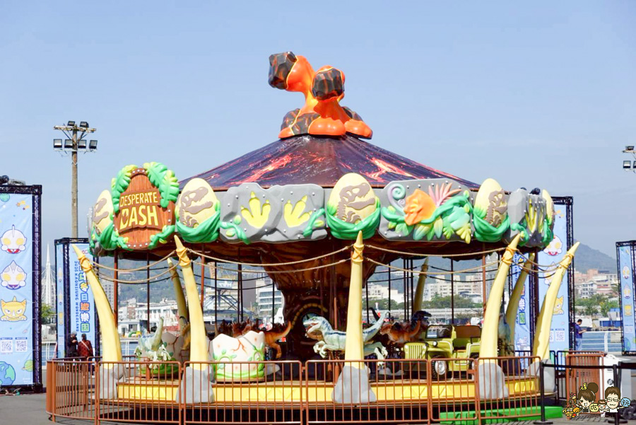 恐龍主題旋轉木馬: 不同於傳統木馬,改以恐龍造型呈現。