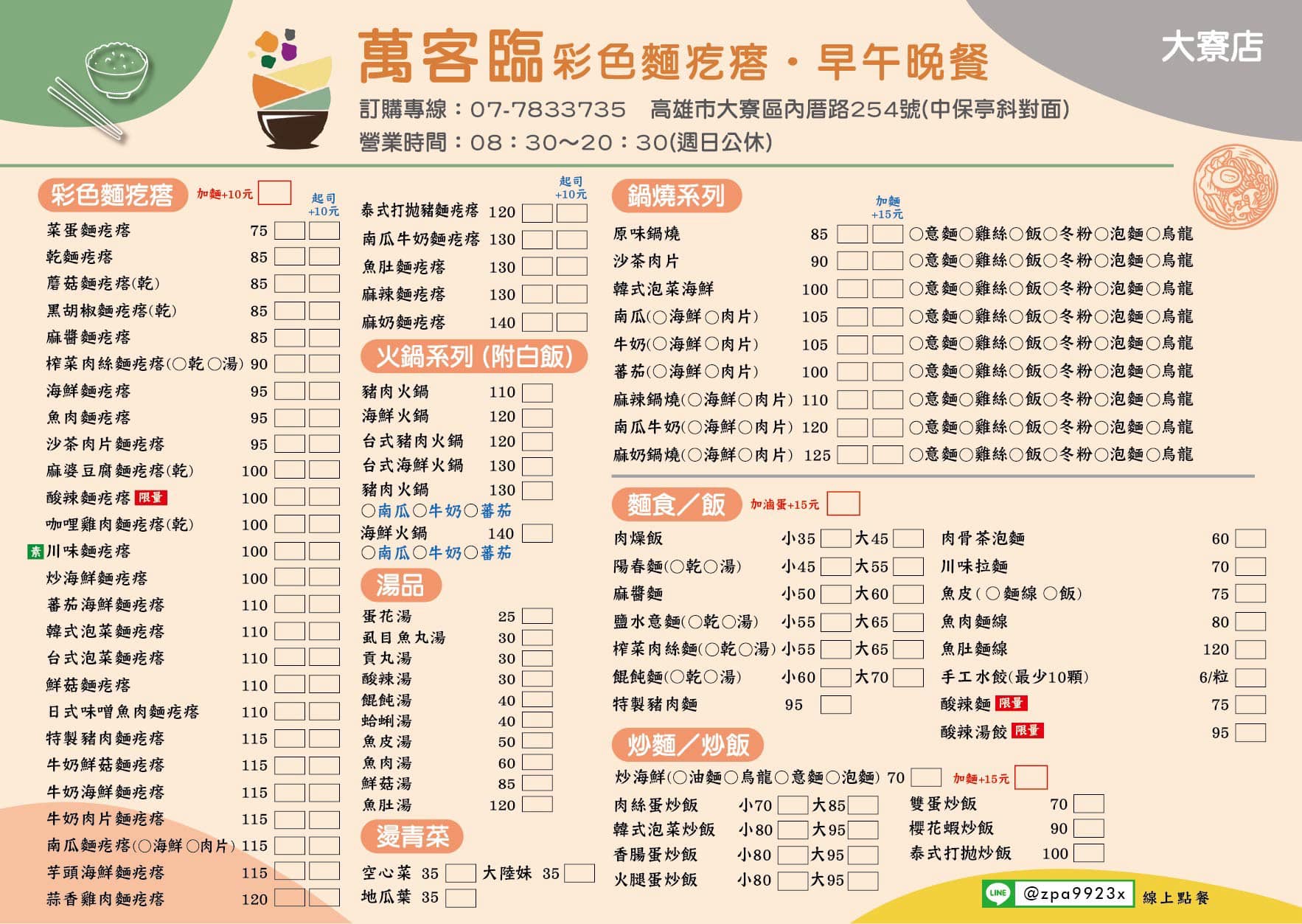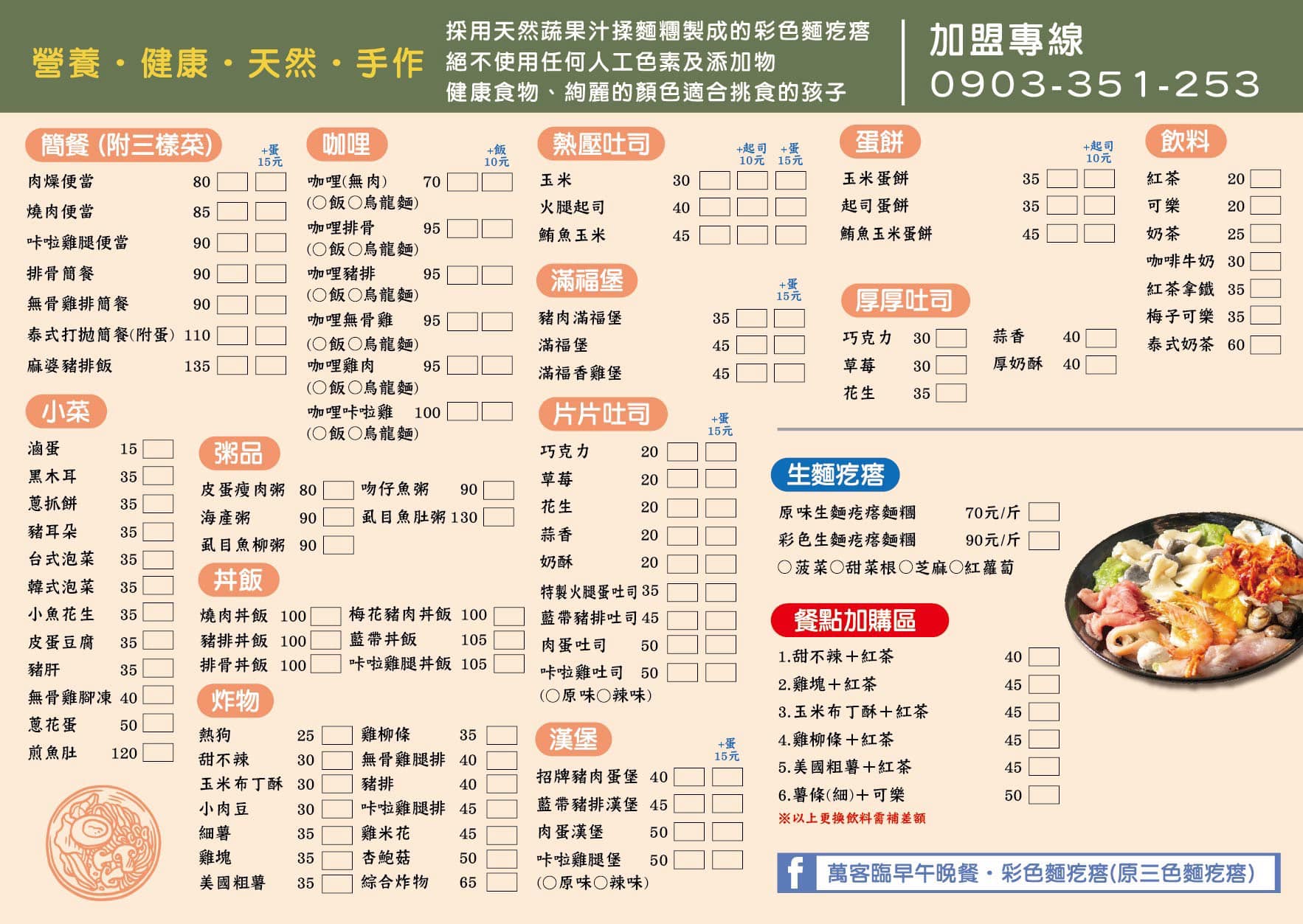 萬客臨彩色麵疙瘩 屏東內埔店 (新品餐點 內埔店 不提供)