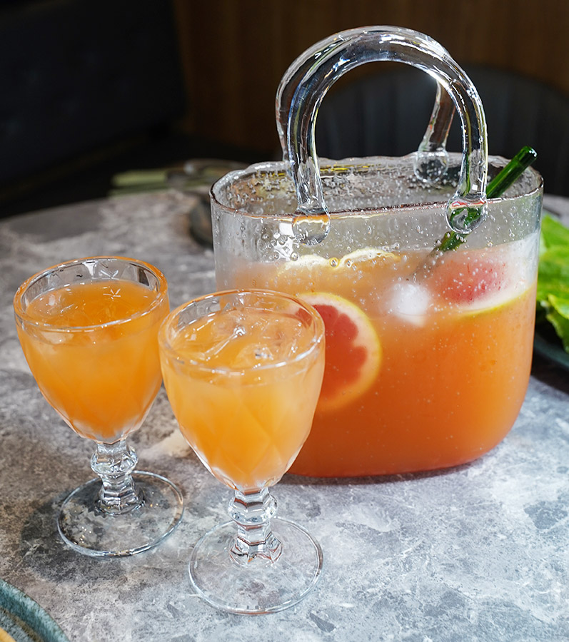 大量使用新鮮葡萄柚、柳橙,搭配氣泡蘇打調配,很解膩又很暢快好喝