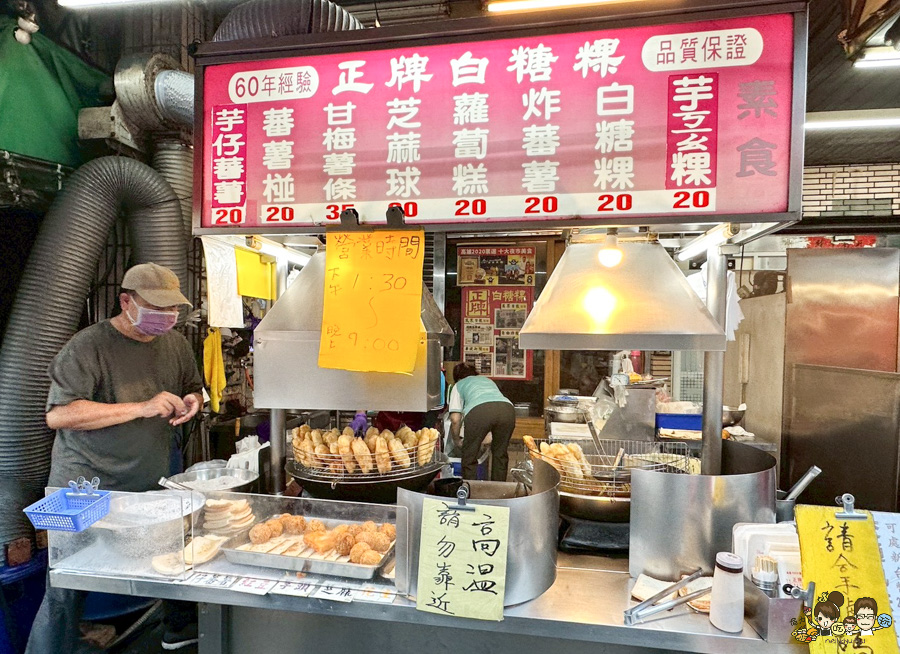 招牌必吃:芝麻白糖粿、花生白糖粿、芋頭蕃薯、芝麻球、蕃薯椪
