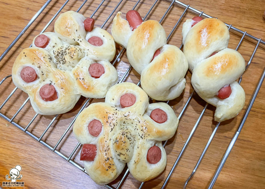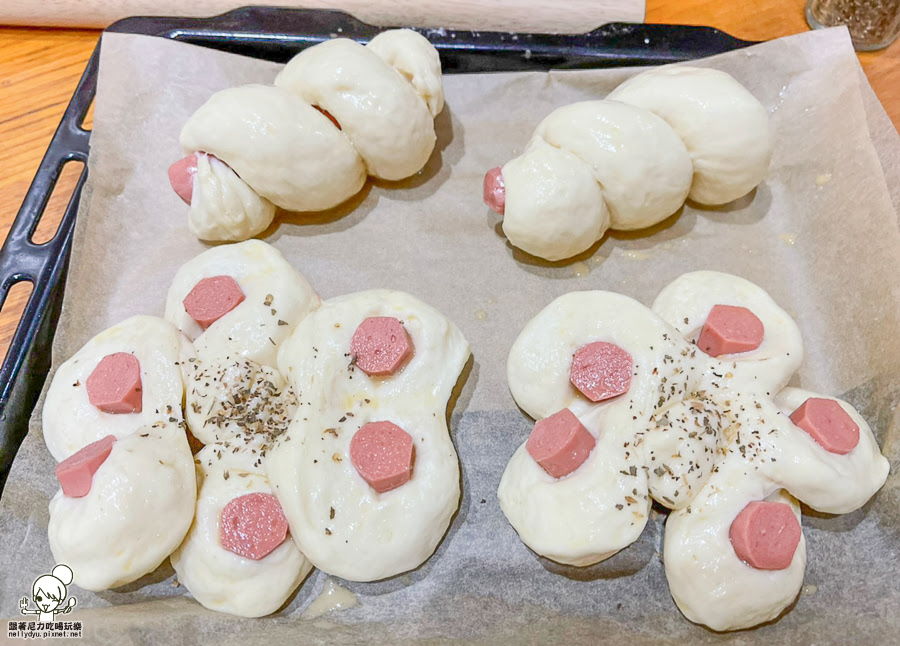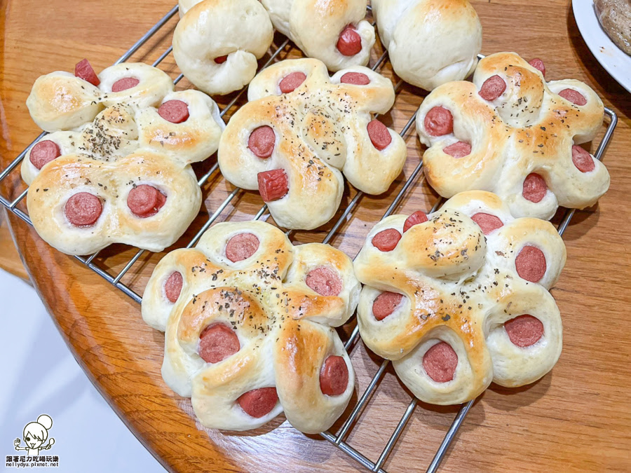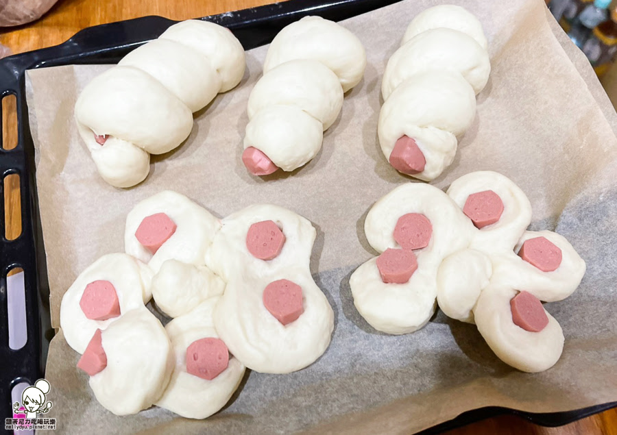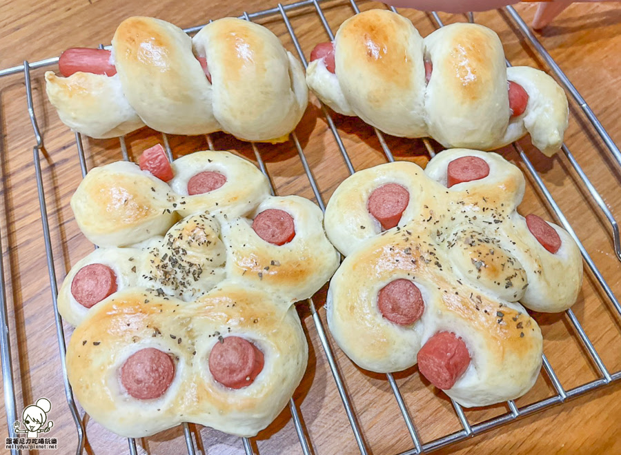 一次可以製作兩款造型唷~一個是台式小熱狗麵包、一個多了花樣的造型麵包