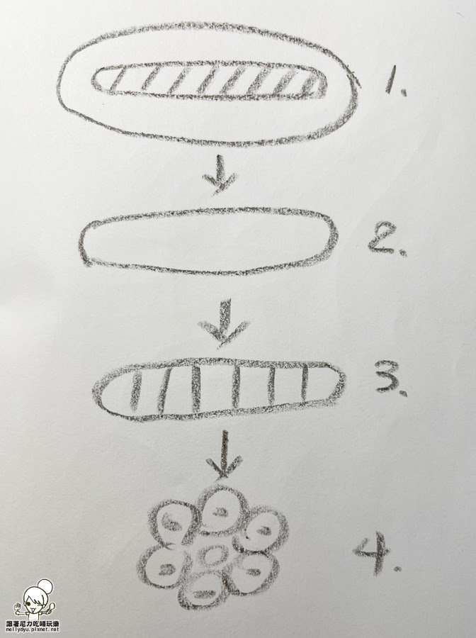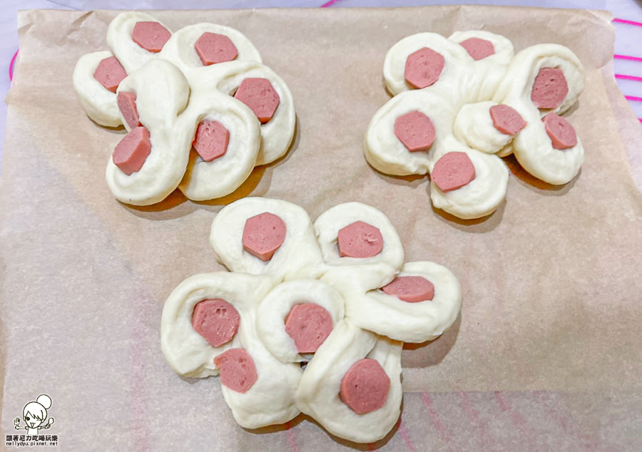 台式小麵包的麵團我捲的太厚了,所以整個好像大腸圈XDDD,下次可以稍微改善