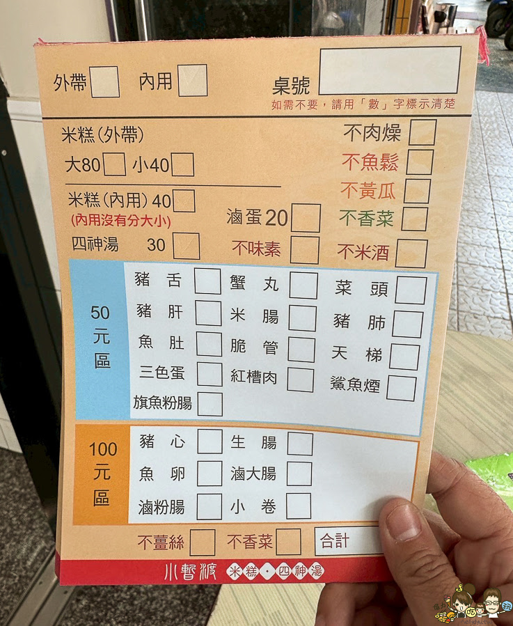 小暫渡招牌是米糕、四神湯,乾式內臟切仔料也是非常推薦