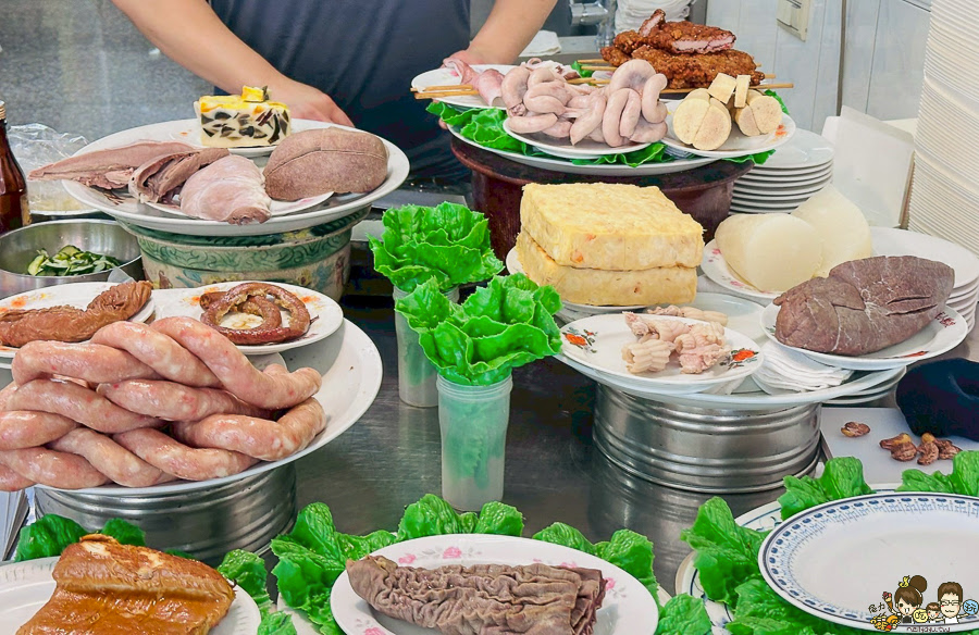 檯面擺滿各式各樣的動物內臟及手工粉腸等切仔料