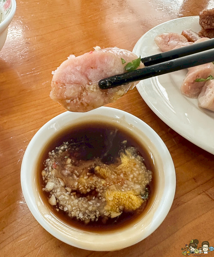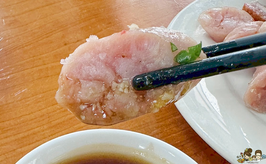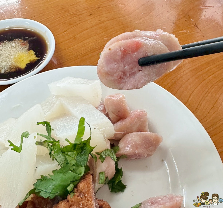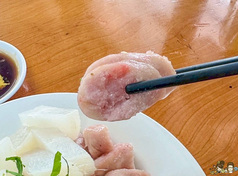 粉嫩色系的獨家旗魚粉腸,吃起來有清甜魚漿味,咬起來還有軟嫩旗魚肉口感