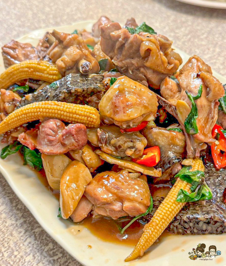 加入了米血、玉米筍、杏鮑菇,帶出九層塔香氣很夠味