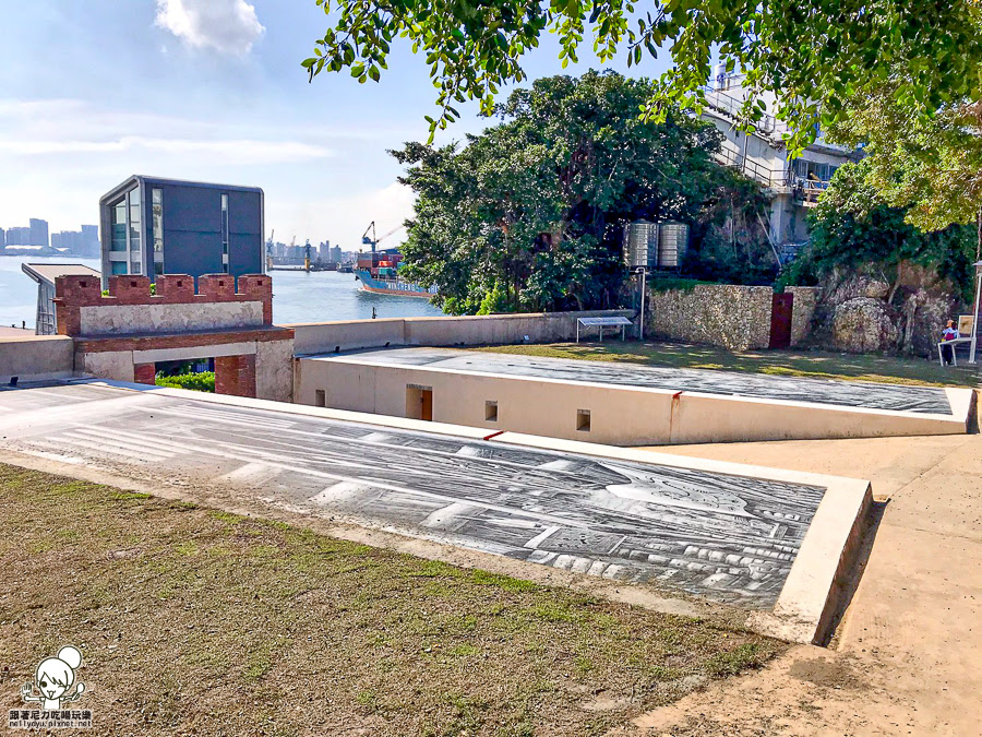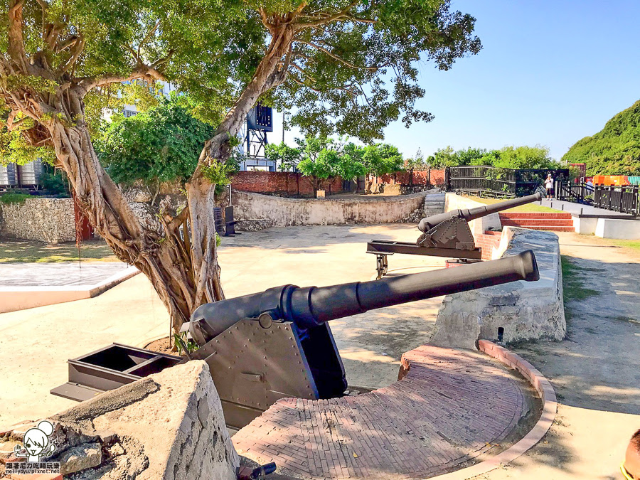 保留原有的古蹟原貌,園區內還有許多古早砲台、斑駁的古蹟本體