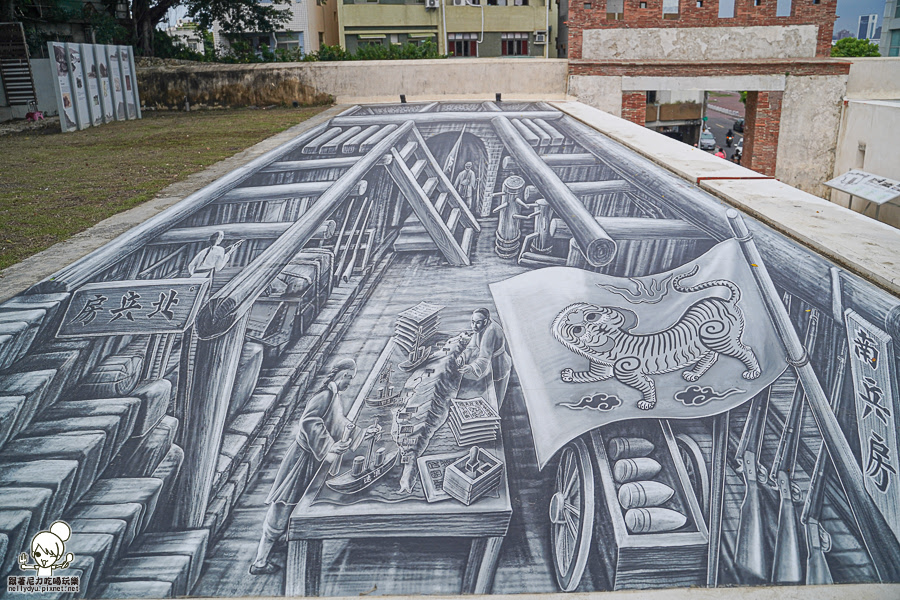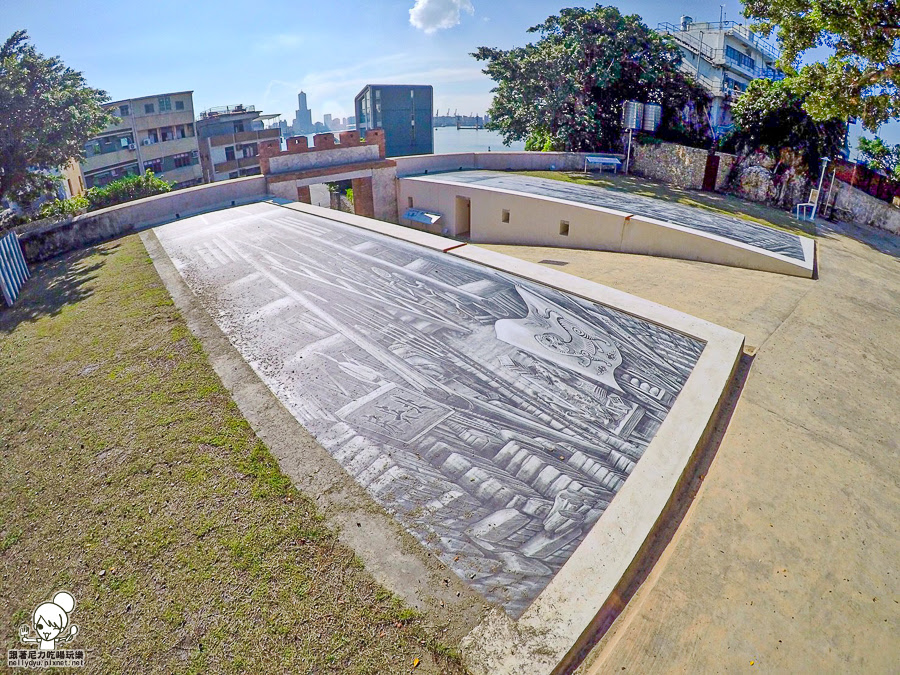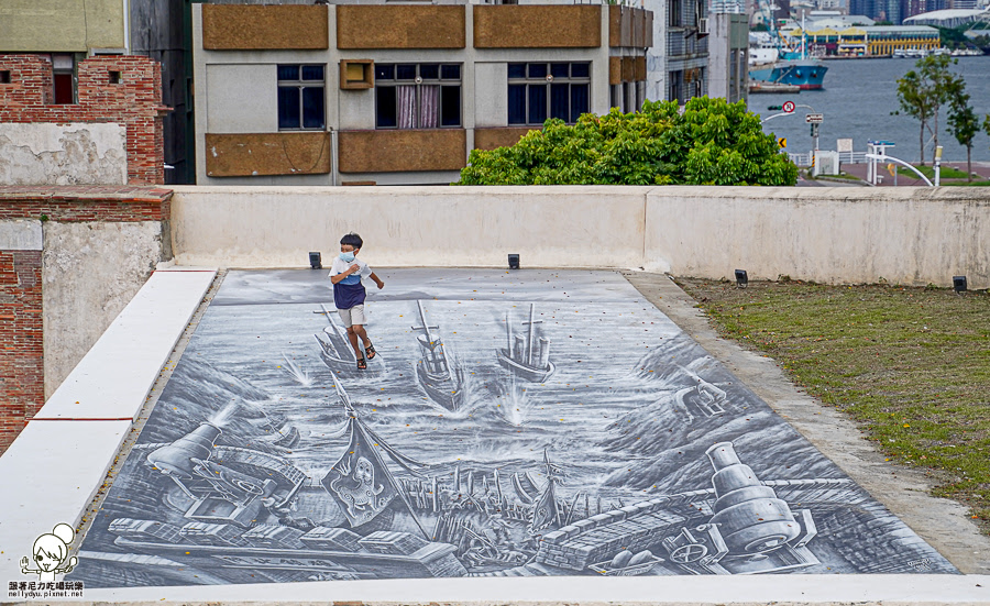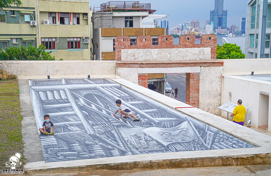 還有巨砲轟炸的壯觀景色,都是高雄在地藝術工作者-圖龍所繪製創作