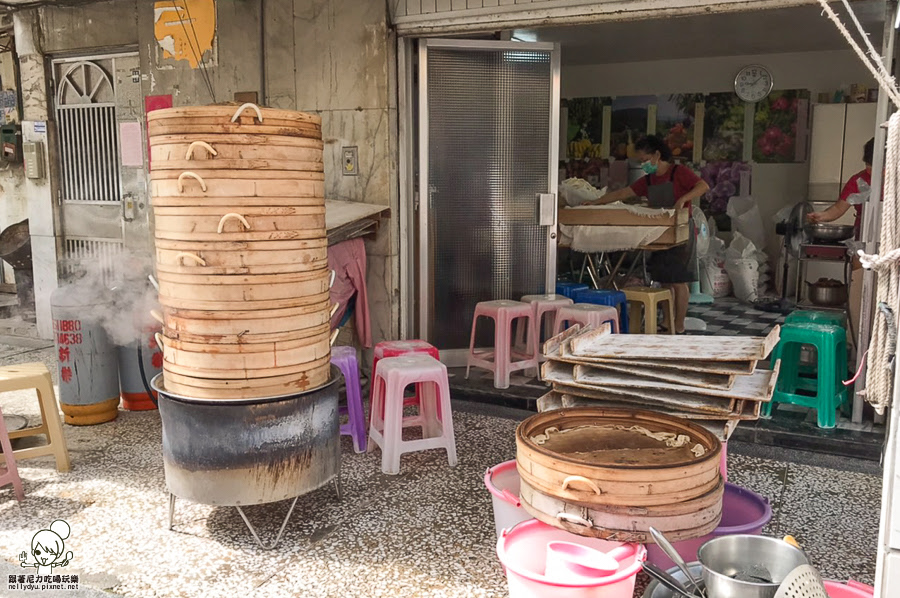 旁邊蒸籠都不段的烹飪包子、饅頭、割包