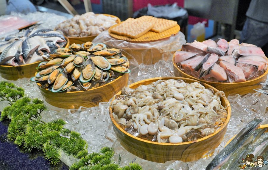 鮑魚、大魷魚、松葉蟹腳、生食級干貝、魚、蛤蠣通通有