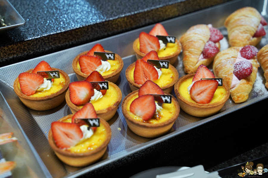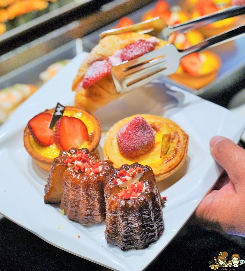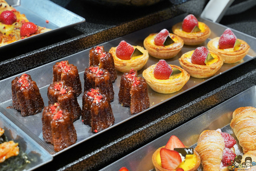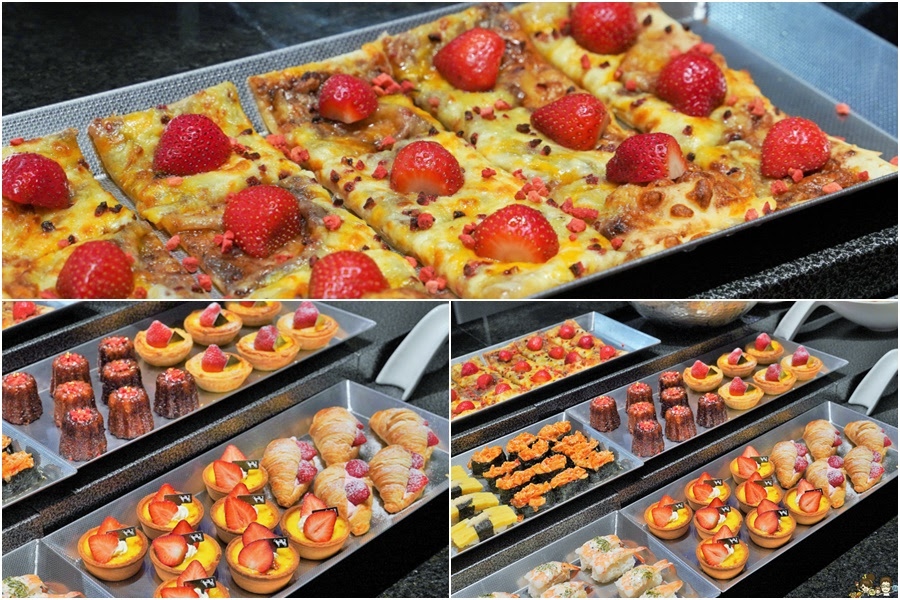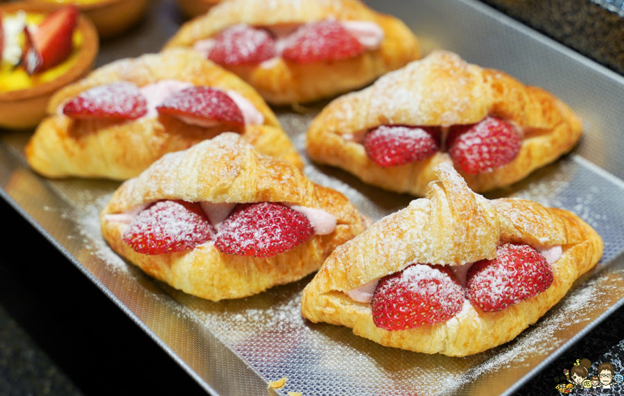 草莓可麗露、草莓檸檬塔、草莓蛋塔、草莓披薩、草莓可頌等點心甜點