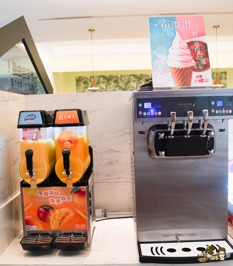 不僅有很濃的泰國明果冰淇淋,還有大苑子芒果冰沙、水蜜桃風味優酪冰沙