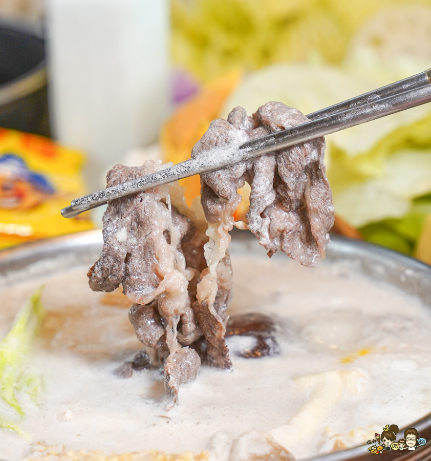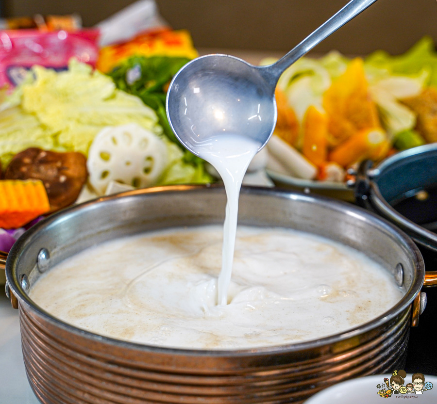 帶有飽滿香氣引出乳香的湯頭,涮肉、涮鍋物料,小孩都不挑食吃光光