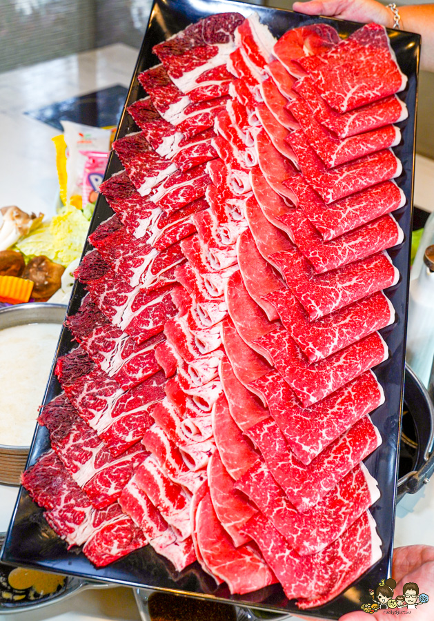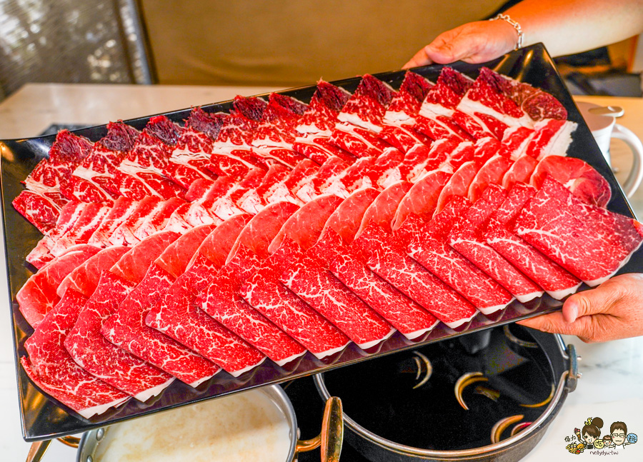 涮肉片不用沾醬,直接大口吃M9+霜降和牛,好軟嫩爆出甘甜湯底香氣