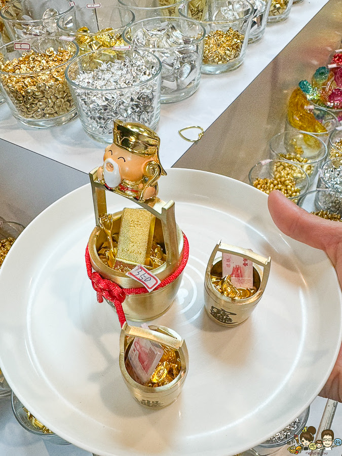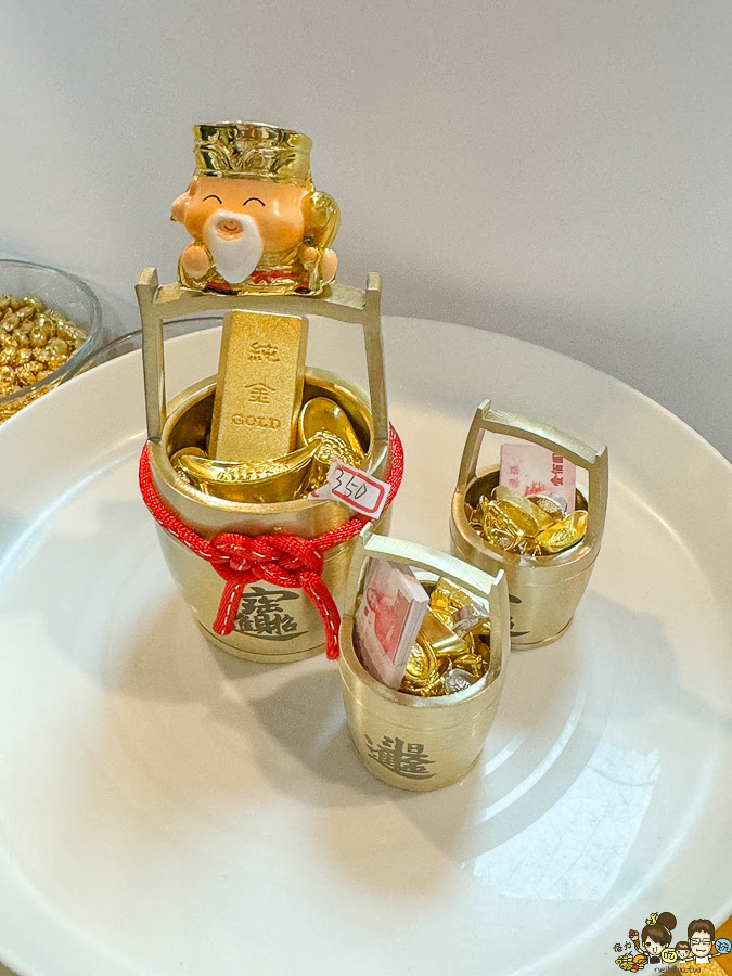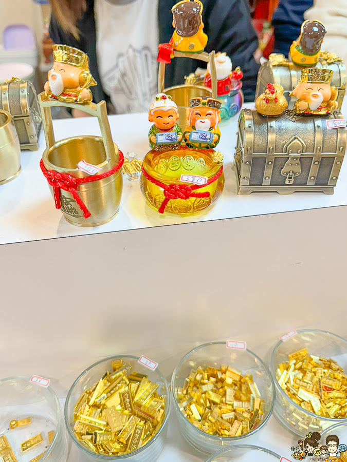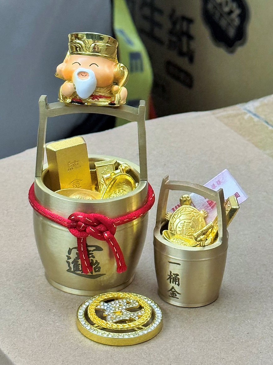 發財小物很多,金塊、元寶、金龜、算盤、黃金萬兩、鏟子等等都有