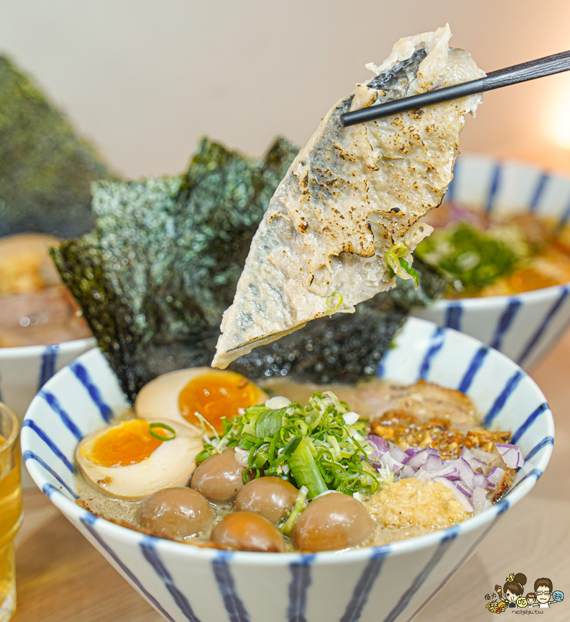 台灣在地食材虱目魚、狗母魚、龍骨熬煮的湯頭,讓拉麵帶有台灣風味