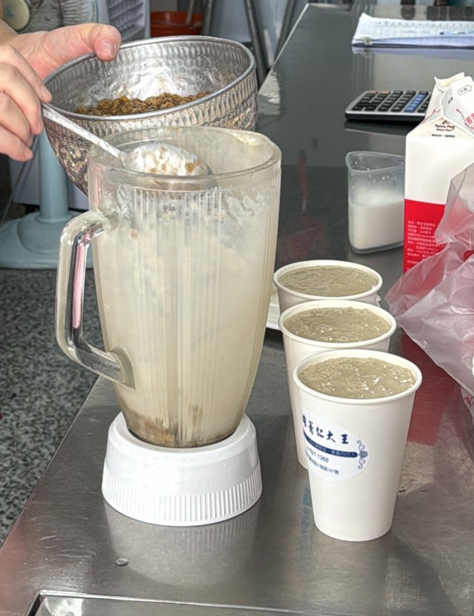 綠豆完成的跟冰塊融合一起,喝起來會比較像奶昔口感
