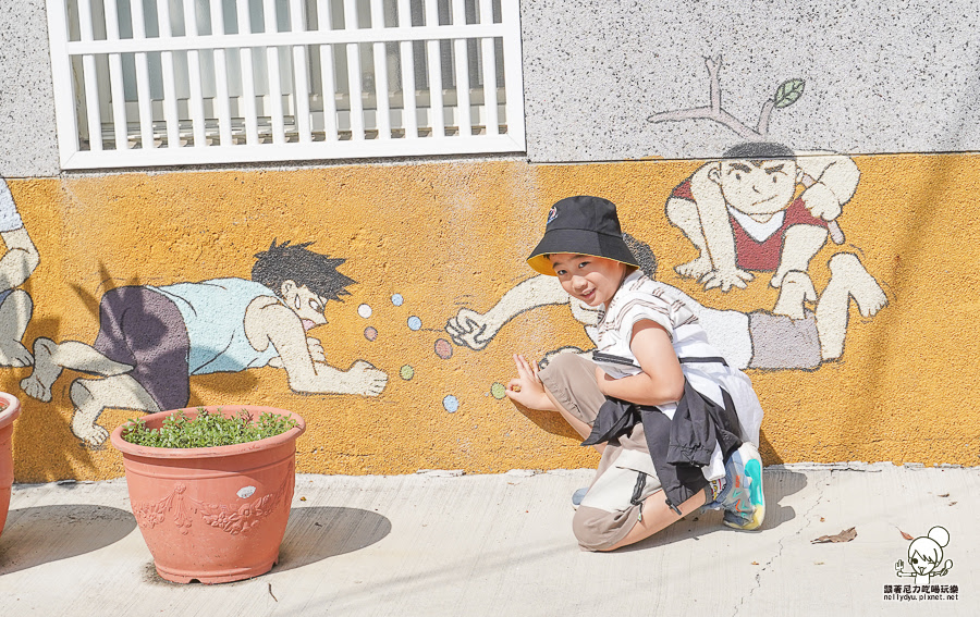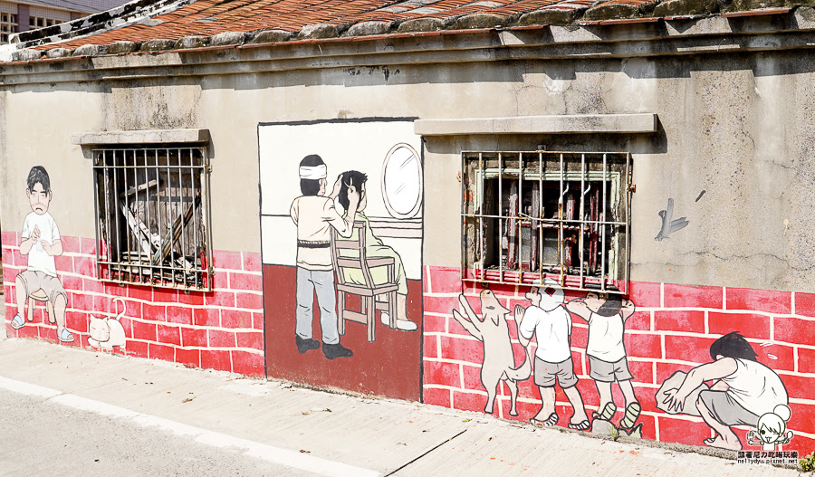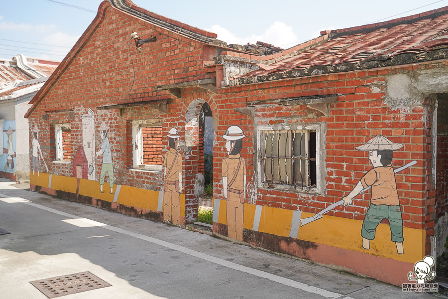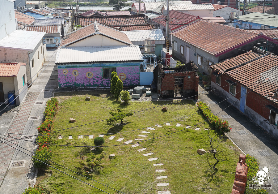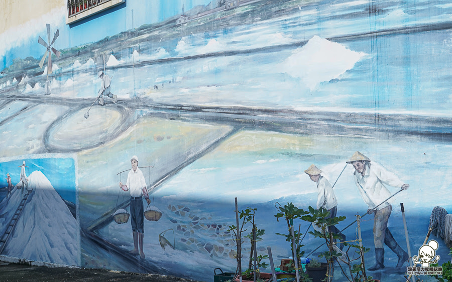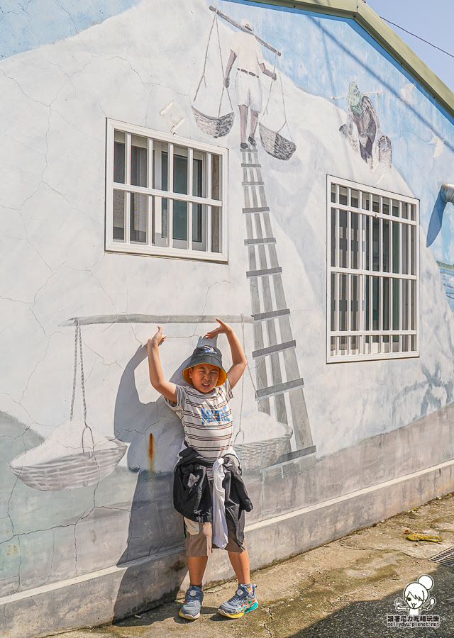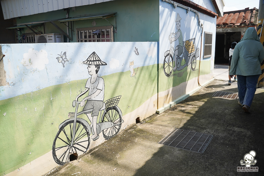 旁邊就是永安鹽田社區彩繪巷,可以穿梭巷弄看到老房舍外觀都是樸實的鹽田彩繪